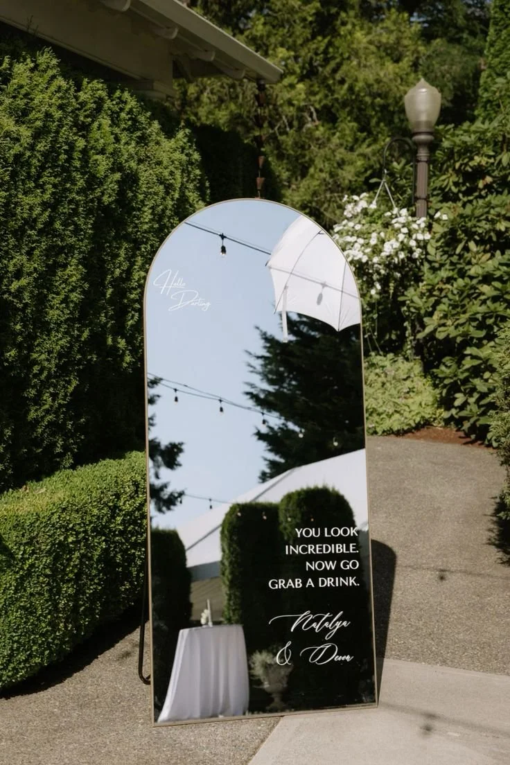 Our elegant mirror welcome signs add a stylish and personalized touch to your event entrance. Customized with your message, they create a warm first impression for guests and a beautiful keepsake for photos.